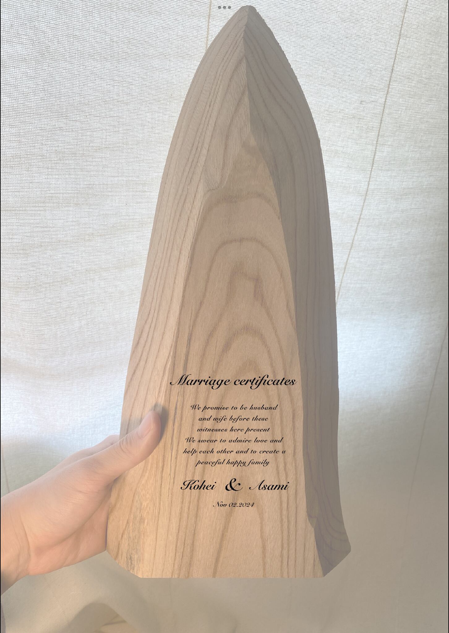 一枚板を使った木製の結婚証明書をお作り致します。