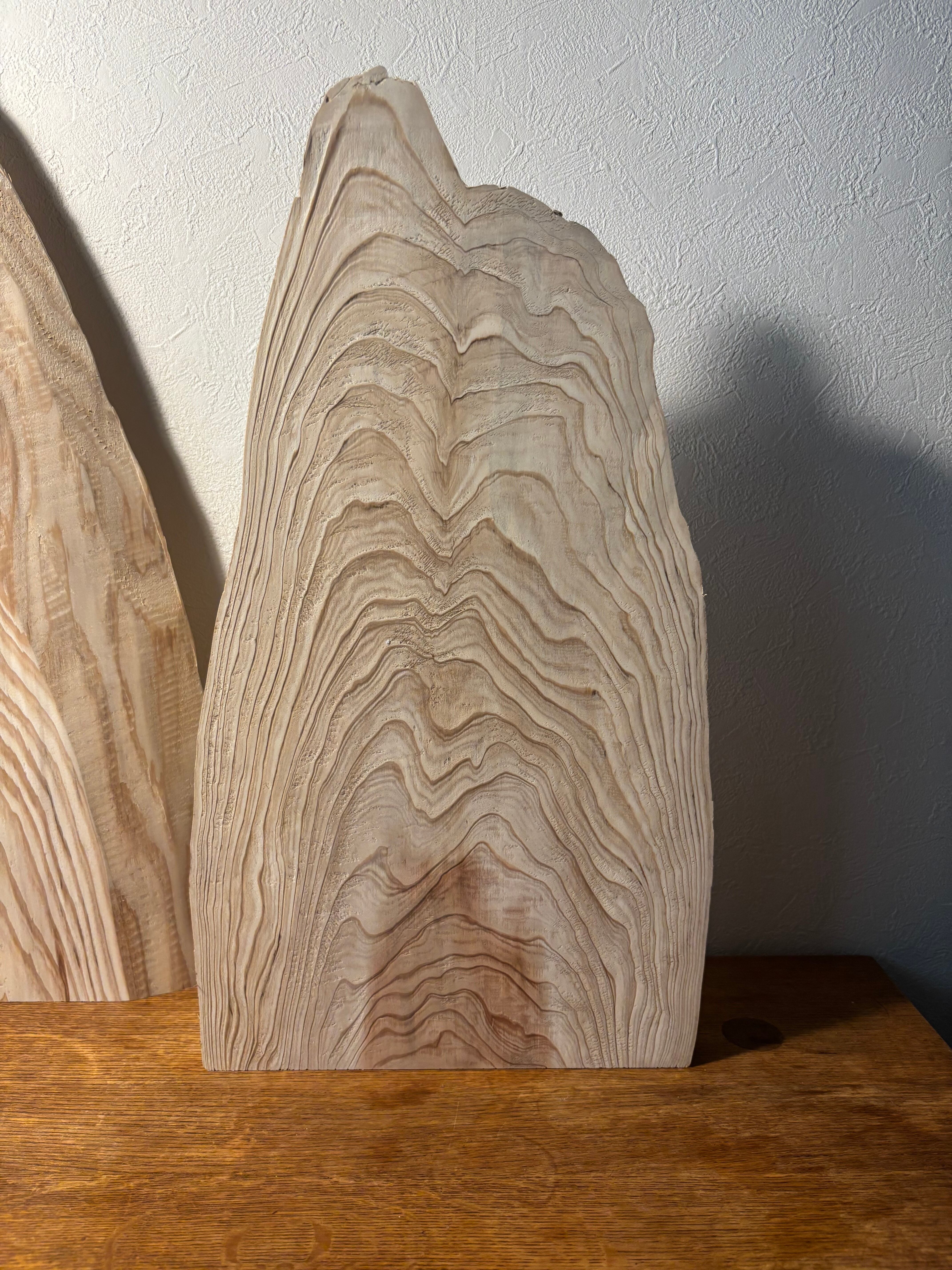 こちらの木材は彫刻加工前により研磨する場合がございますので、若干の形の変化がある場合がございます。