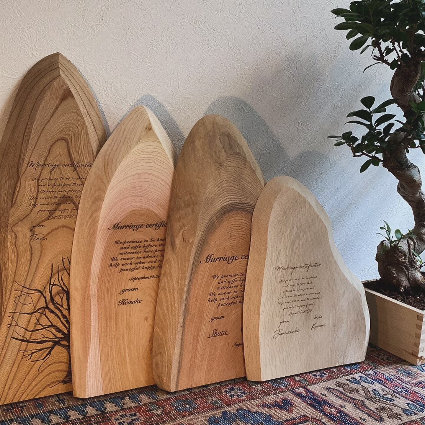 一枚板を使った木製の結婚証明書をお作り致します。